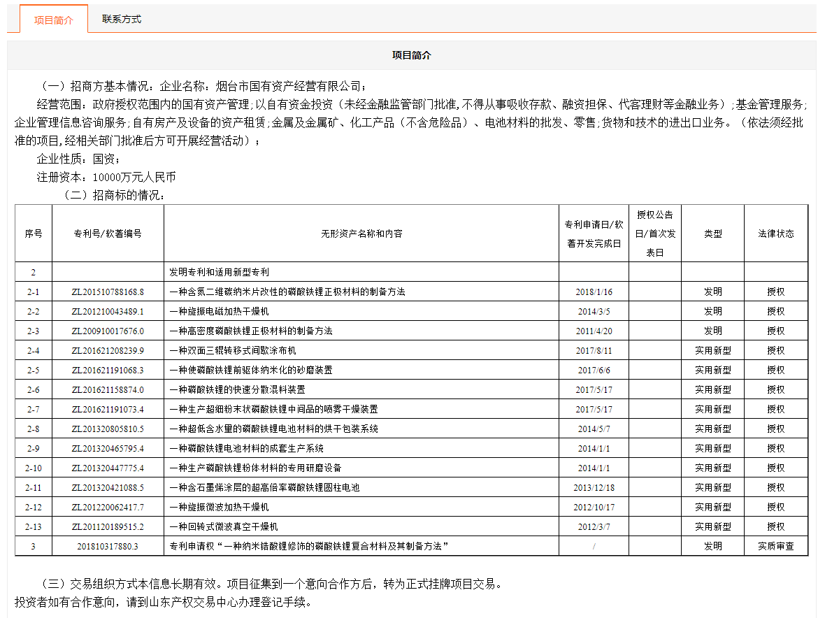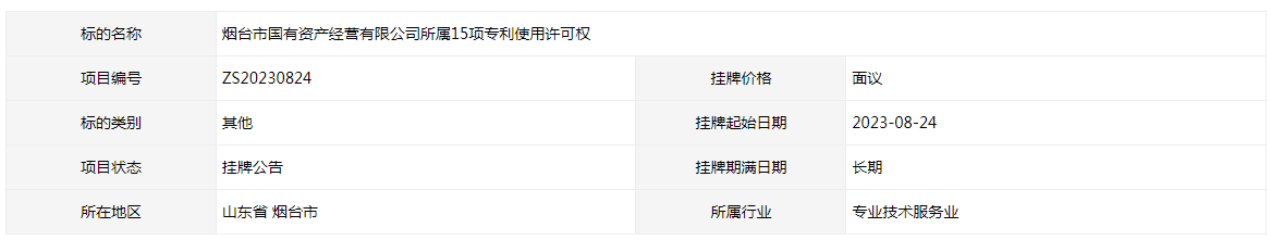 煙臺市國有資產經營有限公司所屬15項專利使用許可權