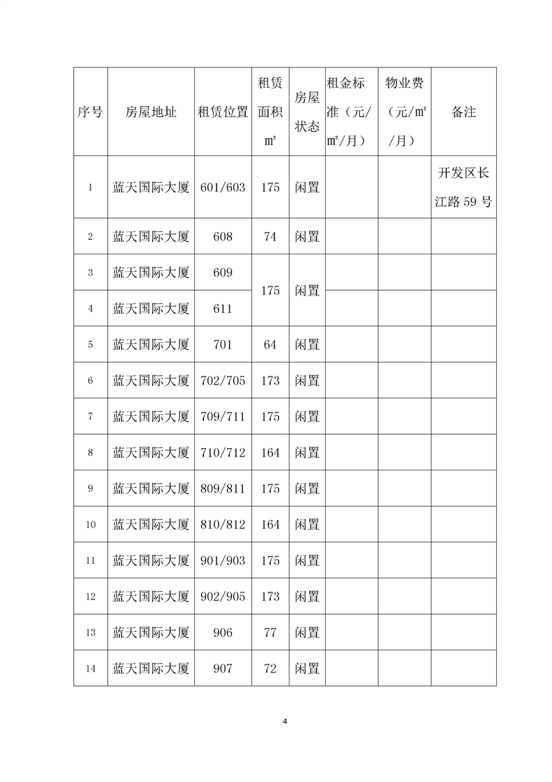 開發(fā)區(qū)長江路59號藍(lán)天大廈部分房屋招租